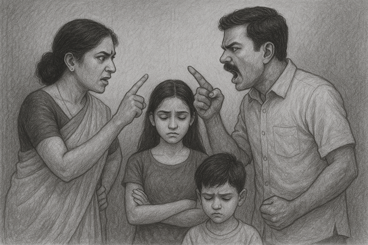 മാതാപിതാക്കളുടെ വഴക്കുകള് കുട്ടികളില് ദോഷം ചെലുത്തുന്നത് പല വഴികളിലൂടെയാണ്. പങ്കാളിയുമായി സദാ വഴക്കടിച്ചുകൊണ്ടിരിക്കുന്നവര് മക്കളോടും അക്രമാസക്തമായും, ശത്രുതാമനോഭാവത്തോടെയും, അവരുടെ വികാരങ്ങൾക്ക് ഒട്ടും പരിഗണന കൊടുക്കാതെയും പെരുമാറാം. സമയം മൊത്തവും വഴക്കിനായി മാറ്റിവെച്ചവര്ക്ക് കുട്ടികളുമായി സമയം ചെലവിടാനുള്ള ഊർജ്ജമോ നേരമോ മനസ്സാന്നിദ്ധ്യമോ ബാക്കിയുണ്ടായേക്കില്ല. മനസ്സില് കുമിയുന്ന ദേഷ്യവും ദുഃഖവുമൊക്കെ അവർ കുട്ടികള്ക്കു മേൽ പുറത്തെടുക്കുകയും അവരെ അമിതമായി ശിക്ഷിക്കുകയും ചെയ്യാം.