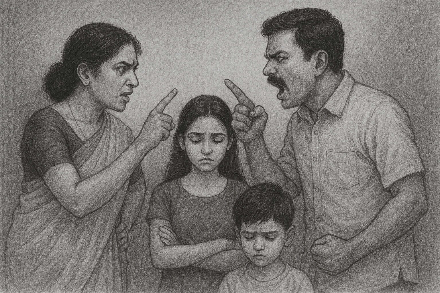 ദമ്പതികൾക്കിടയിലെ വഴക്കുകൾ എന്നത് ഏറെക്കുറെ സ്വാഭാവികം തന്നെയാണ്. കുട്ടികളെ അവ സാരമായി ബാധിക്കുക, അവ അടിക്കടി സംഭവിക്കുകയോ ഏറെ കഠിനമാവുകയോ വേണ്ടുംവിധം പരിഹരിക്കപ്പെടാതെ പോവുകയോ ചെയ്യുമ്പോഴാണ്. വഴക്കുകള് കുട്ടികളെ സംബന്ധിച്ച വിഷയങ്ങളിലാകുന്നതും കൂടുതല് പ്രശ്നമാകാം. ഇത്തരം വിഷയങ്ങള്ക്ക് ഉദാഹരണങ്ങളാണ് അവരില് എത്രത്തോളം അച്ചടക്കം നിര്ബന്ധമാക്കണം, സ്കൂളിൽ കൊണ്ടുവിടുന്നതും തിരിച്ചുകൊണ്ടുവരുന്നതും ആരു ചെയ്യണം, എത്ര സമയത്തേക്ക് ഫോണും കമ്പ്യൂട്ടറും അനുവദിക്കാം തുടങ്ങിയവ.